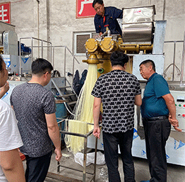 FJ-25型自熟米線機,是我廠生產(chǎn)的新一代食品機械,生產(chǎn)時大米不需粉碎磨面,只要將大米浸泡洗凈入機即可生產(chǎn),自動化程度高,操作簡單,l人即可生產(chǎn),自動加料、一次自熟成型。該型米線機可生產(chǎn)米粉、米線、年糕等產(chǎn)品。加工食品外表光滑,厚薄、粗細均勻可調(diào),筋軟適度,有彈性,口感柔軟、味道純正。 ![]()