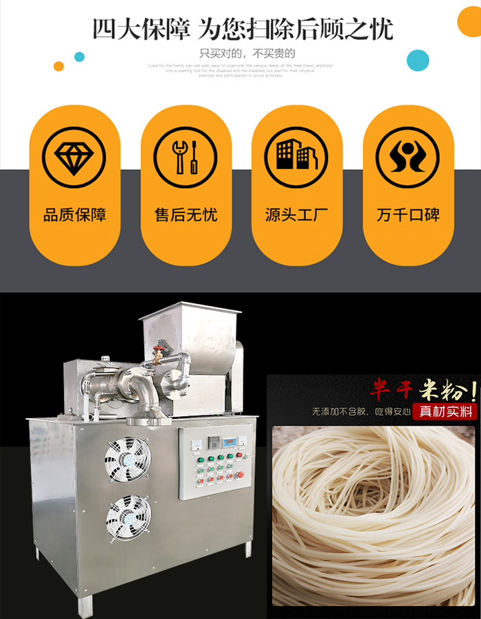 多功能米粉機(jī)如今已經(jīng)進(jìn)行更新?lián)Q代了,因?yàn)轼欘9鞠胱尶蛻魰r刻感受到這種新穎的氣息。我們做出來的米線適用于餐廳,小型加工房,所以不用擔(dān)心沒有買家,俗話說“民以食為天”,吃喝是身體之源,是人類的原始本能,很多人都選擇網(wǎng)上買螺螄粉,米粉什么的,我們用機(jī)器做的米線進(jìn)行包裝,所以,您訂購貨物我們就可以給你淘寶發(fā)貨了,保證了發(fā)貨速度,而且這種包裝的米線是不添加任選添加劑的。