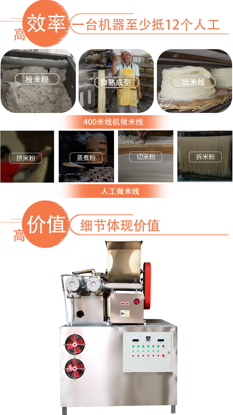 全自動米粉機(jī)其實是一款占地面積非常小的設(shè)備了,而且我們鴻睿這款機(jī)器在機(jī)身更加的輕巧,這樣可以保住我們在移動的時候更加的方便,有的太笨重了不能挪動機(jī)器就會很麻煩的呢,鴻睿廠家的全自動米粉機(jī)的配件都是使用304的不銹鋼制作而成的,這樣可以讓我們的機(jī)器外觀非常美觀。這款機(jī)器的自動化程序非常高,在生產(chǎn)米粉的時候定量更加的準(zhǔn)確,生產(chǎn)出來的米粉大小統(tǒng)一、米粉可以隨意調(diào)整,只需要一個人操作。而新型全自動米粉機(jī)具有一次性成熟成型,操作簡單、方便、衛(wèi)生等特點,只需一人即可操作。